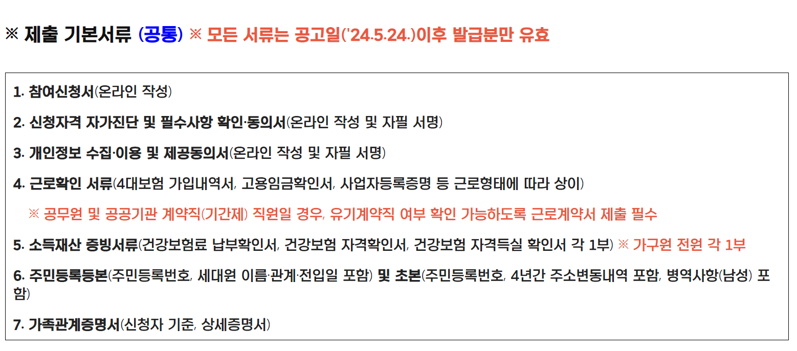 홈페이지 사업 안내 페이지에 가시면 제출 기본 서류와 해당 서류들을 발급하는 사이트로 쉽게 이동할 수 있으니 사업 안내 페이지를 참고하시면 편하실 것 같습니다.