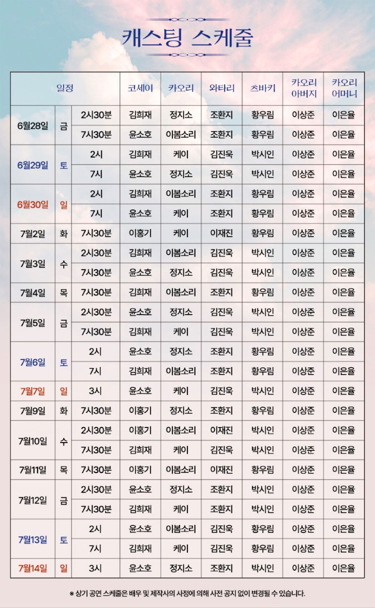 추가되는 스케줄은 추후 안내할 예정입니다.