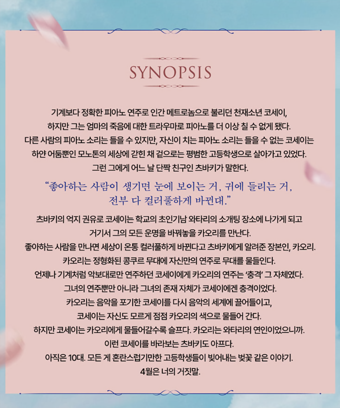 4월은 너의 거짓말 뮤지컬 시놉시스