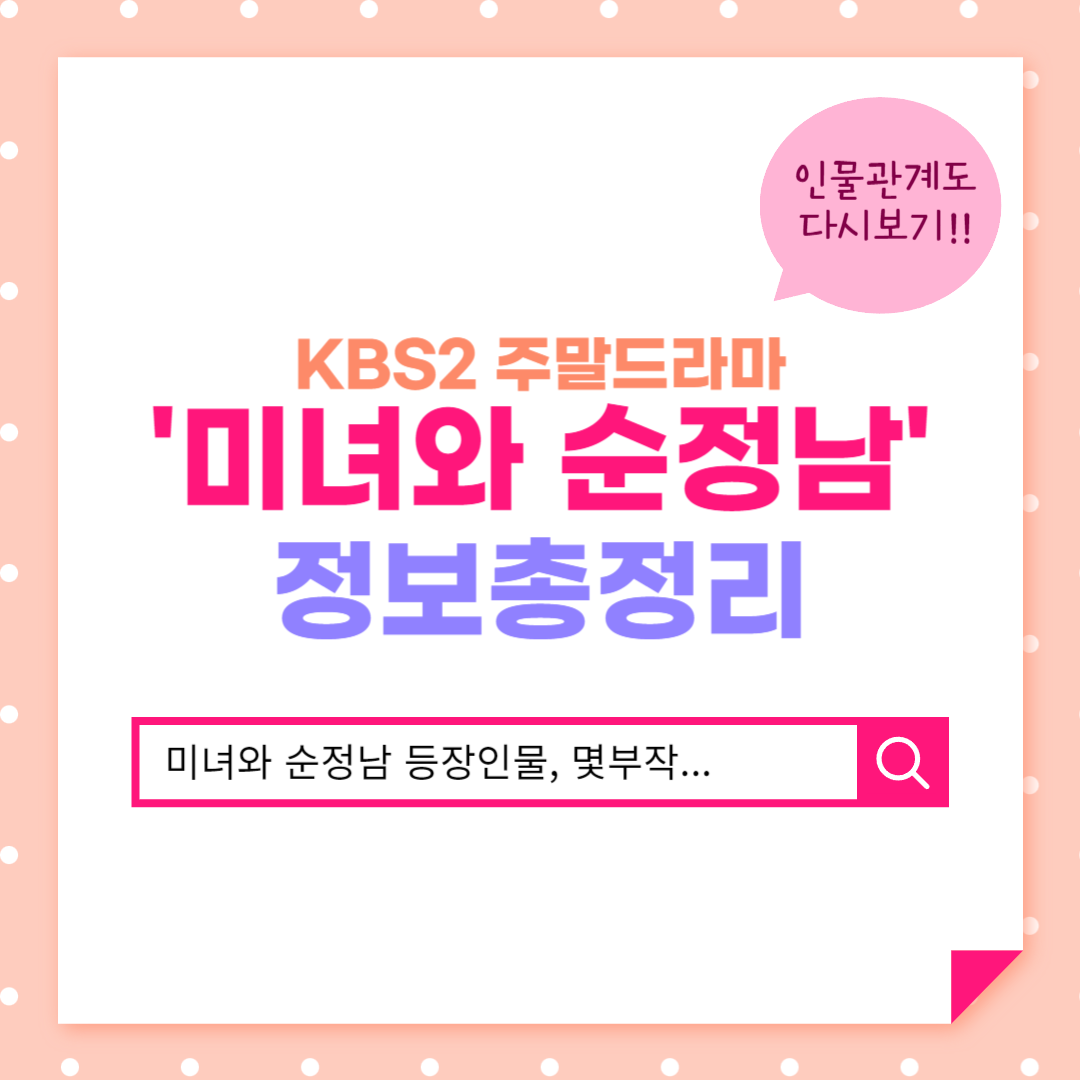 2024년 3월 23일부터 방영하고 있는 KBS2 주말드라마 미녀와 순정남의 기본정보와 등장인물과 출연진, 인물관계도, 다시 보기 등을 총정리해 보겠습니다.